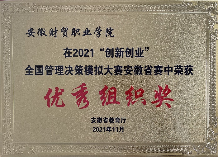 日前,由安徽省教育厅主办,安徽工业大学承办的2021年“创新创业”管理决策模拟大赛成绩公布,我校财会金融学院派出的三支队伍荣获一等奖、二等奖、三等奖各1项的好成绩,学校荣获“优秀组织奖”。