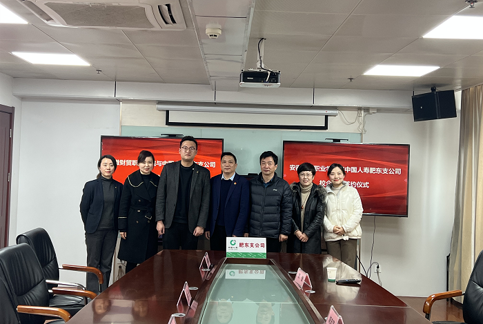 2月24日上午,财会金融学院与中国人寿肥东支公司校企合作签约仪式在合肥市肥东支公司会议室成功举行。中国人寿肥东支公司总经理梅军、副总经理苏丹、共建项目总监王宇、财会金融学院副院长方春龙、党总支书记胡宏萱,教研室主任刘岚,财富管理专业教师司俊等相关负责人员出席本次仪式。
