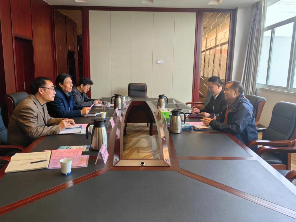 胡戴新对文功一行的到来表示欢迎。他围绕我校办学历程,介绍了学校的整体发展情况。他指出学校始终聚焦人才培养,致力于培养高素质的技术技能型人才,希望双方以此次校企合作交流为契机,正式建立起联系渠道,充分发挥人才、技术、平台和资金等各自优势,积极找准合作契合点,真正实现互惠双赢。