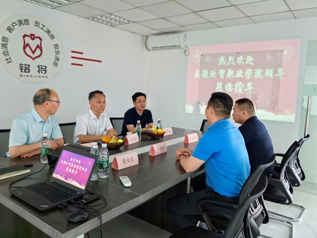 6月1日下午,bat365官方网站党委书记张志祥带队前往安徽兰智大数据科技有限公司和安徽艾维豪特智能科技有限责任公司走访调研。信息工程学院负责人随行。