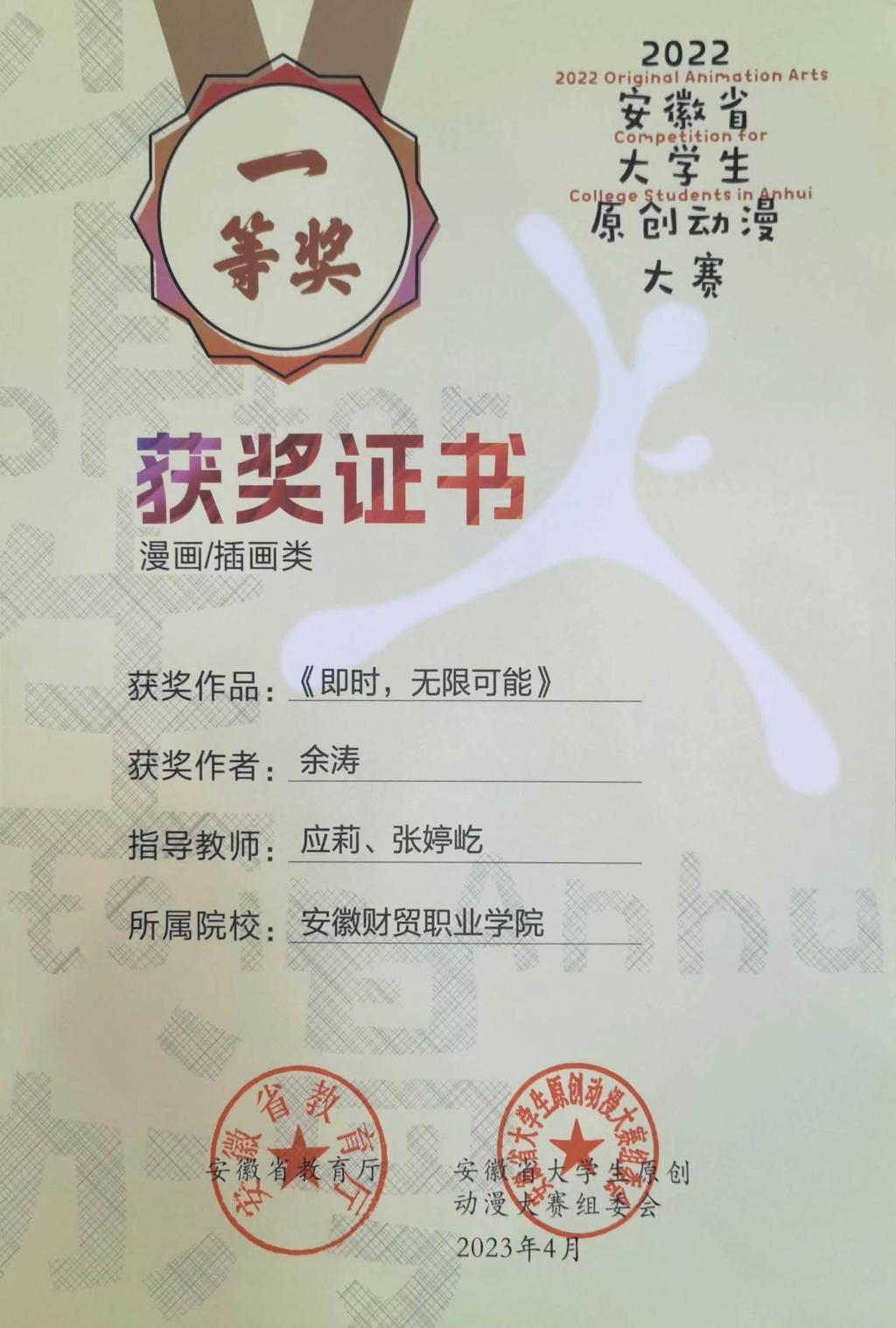 近年来,bat365官方网站数字媒体艺术设计专业群紧密围绕“对接地方文化创意产业、聚焦专业数字化改造”的理念,在课程设置、教学改革等方面进行了探索与实践。此次大赛由教师胡杨、高静指导的动漫2001班侯雪晴作品《拥抱每一种生活》,由教师应莉、张婷屹指导的广告2002班余涛作品《即时,无限可能》均获得了一等奖,以丰硕果实证明了学校教育教学改革取得了阶段性成效。