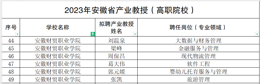 近日,安徽省教育厅、安徽省人力资源和社会保障厅联合下发《关于公布2023年安徽省产业教授名单的通知》,经岗位发布、院校推荐、资格复审、网上公示等程序,2023年度拟聘用安徽省产业教授(兼职)301名,其中高职院校产业教授244名。bat365官方网站推荐的刘温泉、梁峰、周保昌、葛大伟、郭元媛、张凯等6人成功获批为安徽省产业教授。