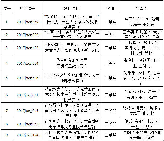 2017年省级教学成果获奖情况