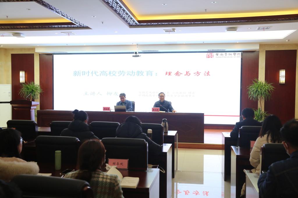 2月22日下午,安徽艺术学院副院长柳友荣教授应邀来我校开展劳动教育专题培训,作了题为“新时代高校劳动教育:理念与方法”的主题讲座。学校党委书记张志祥主持会议,马克思主义学院全体教师、校团委、全体专职辅导员参加学习。