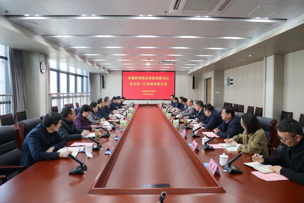 学校党委书记张志祥,党委副书记、校长刘银国对安徽职业技术学院的高度重视和细心安排表示感谢,介绍了我校近年来取得的成绩,并对党的建设、依法治校、内涵建设、高层次人才引进等工作进行了分享。