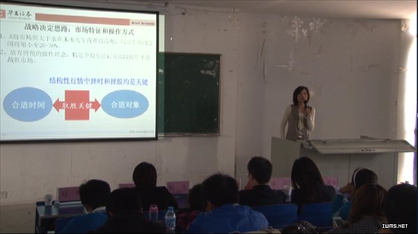 日前,华安证券公司三位高等管理人员来到我院,在5202教室为财税金融系近200名同学和全体专职教师讲授《证券交易》课程。 华安证券合肥金寨路财富中心主管宋洋讲解的是投资交易的基本概念和常用技术分析指标;营业部投资顾问罗贤龙结合当前国际经济形势和国内经济状况,分析了四季度投资策略;华安证券首席投资顾问、安徽经济生活频道《财经特快》常年特邀嘉宾、“灵玉看市场”专栏主讲张灵玉结合实战经验和多年的理论研究,深入浅出地向同学们传授A股市场投资技巧。讲座持续两个半小时,为现场听众送来了投资“大餐”和交易“真经”。 此次“企业高管进课堂”活动得到华安证券公司营业部领导的大力支持。近年来,校企双方始终保持密切的合作关系,合作内容包括教师挂职、员工培训、学生技能大赛、实习就业等多个方面。