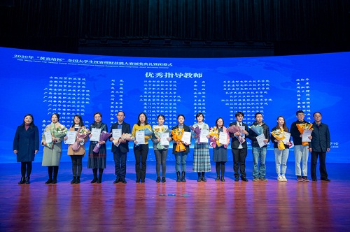 此次大赛,我院作为协办院校获得优秀组织奖,总成绩在286所院校中排名第四,共获个人赛4个奖项,团队赛5个奖项,其中保险团队两支队伍均获一等奖。何翔为优秀指导教师进行了颁奖。