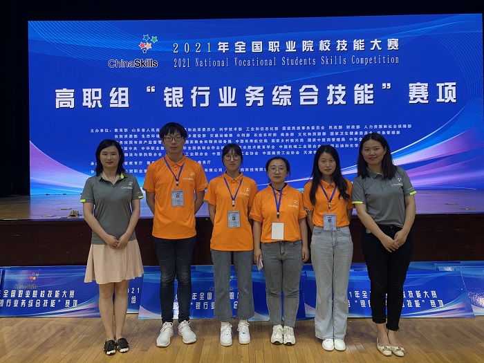 6月10日至11日,2021年全国职业院校技能大赛(高职组)“银行业务综合技能”赛项在山东外贸职业学院举办,安徽省代表队指导老师由我院教师张珺、杨梓担任,该院学生互金1901王敏、互金1903李明昕、财管1902屠雨晴、会管2001张凯参加比赛,最终斩获国赛二等奖。