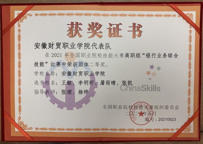 我院获2021年全国职业院校技能大赛(高职组)“银行业务综合技能”赛项二等奖