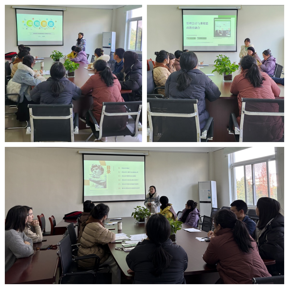 会上范颖群、章振寰和孙红燕三位老师分别结合《税费核算与申报》《财务管理》及《管理会计》等课程进行了课程思政的内容展示与汇报,党支部全体教师认真聆听并围绕课程思政展开交流研讨。
