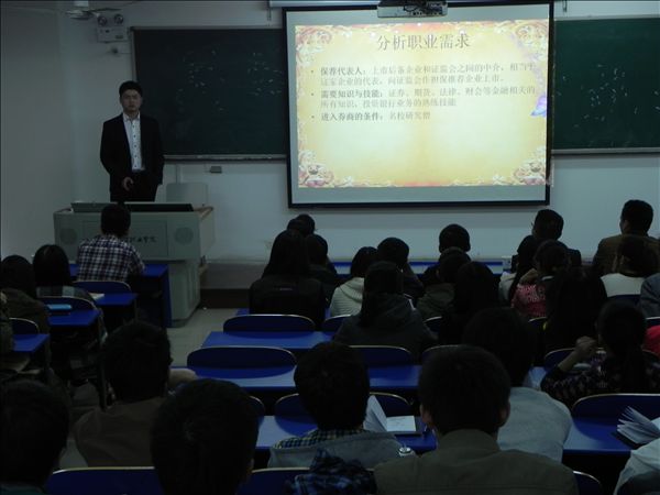 在校期间应该为步入职场做哪些准备?专升本和自学考试对职业成长各有哪些利弊?青年学生创业的动力和阻力在哪里?11月5日下午,财税金融系在6201教室举办“杰出校友 创业领航”报告会,邀请三位优秀毕业生:自主创业的怡秒超级连锁总经理朱朋虎、获注册会计师CPA和律师资格证在会计师事务所工作的丁宁、专升本考入安徽建筑大学的徐伟跃同学,和部分毕业班同学分享了成长历程,引领学弟学妹明确努力方向,党总支副书记徐明主持报告会。
