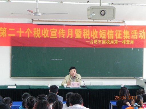 4月份是全国第二十个税收宣传月,28日上午,“第二十个税收宣传月暨短信征集活动”启动仪式在我院举行。副院长胡戴新、合肥市国税局第一稽查局局长刘群出席,财税金融系主任邓庆安主持启动仪式。