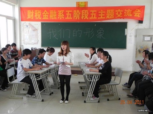 4月25日,在财税金融系投资1001班举办 “我们的形象”主题班会上,同学们以小品、话剧、辩论赛等形式,生动形象地演绎了当代大学生的各种形象,引发在场观摩师生的思索和反省。主题班会得出结论:大学生需要提升自身的专业素养和内在的品格素质,但是也不能忽视外在的形象,良好的素养和品格是通过优美的外在形象展现出来的。