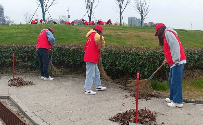 在成立帮扶小组的基础上,学院还成立了“绿色小分队”,学生志愿者于3月12日在支部林开展为树木松土、灌溉、清扫等活动。此外,财会金融学院组织23名志愿者积极投身于校园环境的维护和清理,对校园的草坪杂草和枯枝落叶进行打扫。在线上平台,号召参与蚂蚁种树活动,引导同学们用绿色、节能、环保的方式收集能量,线上线下齐发力,助力环保、参与公益。