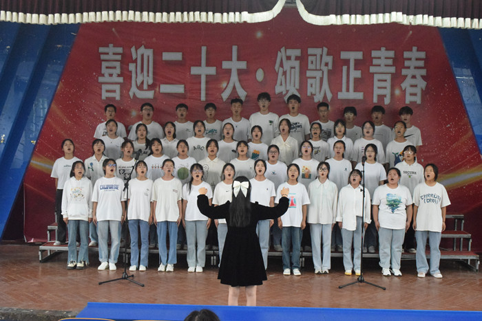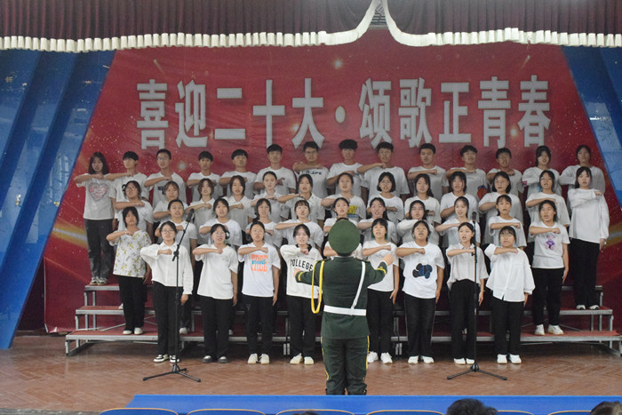 财会金融学院翡翠校区2022级39个新生班级服装整齐、姿态挺拔、精神昂扬。一路风雨一路高歌,一路坎坷一路凯旋,各班级用歌声缅怀历史、用青春展望未来,展示出新时代青年的蓬勃朝气。《强军战歌》《团结就是力量》《打靶归来》《当那一天来临》《闪闪红星》等激昂旋律激励着青年学子们奋发向上;《国家》《歌唱祖国》《奉献》等曲目让现场的同学们为新时代伟大成就感到骄傲与自豪,同学们以最真挚的情感、最嘹亮的歌声喜迎党的二十大。