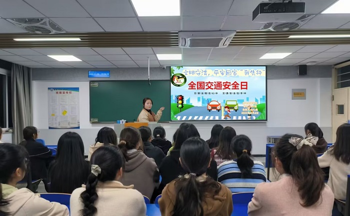各班级通过主题班会的形式向同学们科普交通安全知识。团支书们先是开展图文并茂的宣传、讲解交通安全法则,随后又播放交通安全系列短片,警示同学们要遵守交通安全法则。宣传学习后,各班级组织交通安全知识问答,在互动中加深同学们对于交通安全知识的理解。