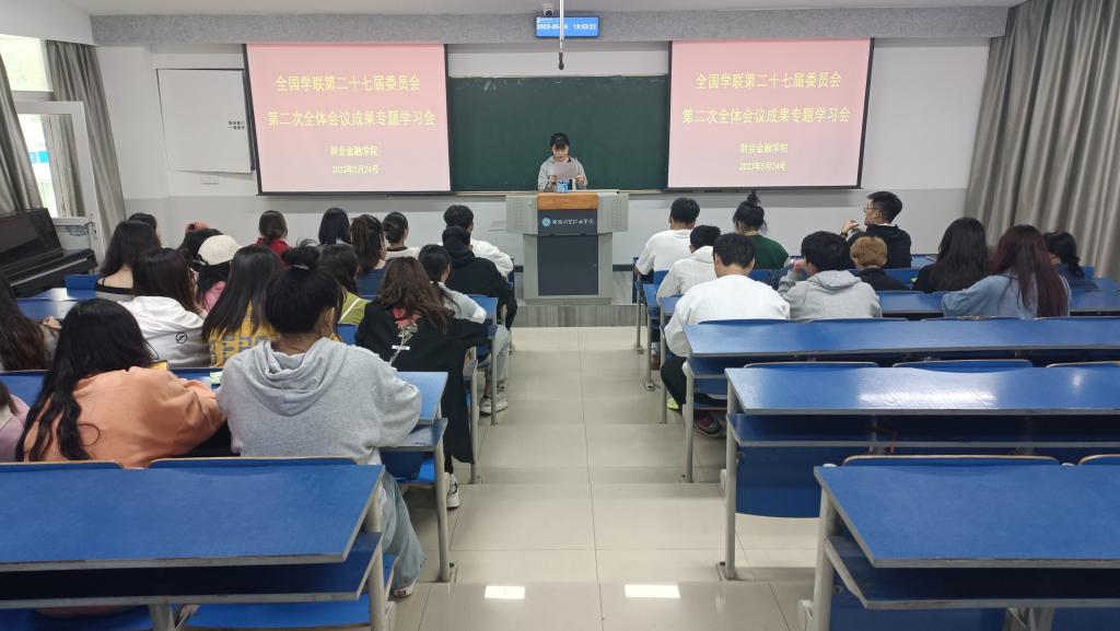 5月24日,财会金融学院组织开展全国学联第二十七届委员会第二次会议成果专题学习活动,全体团学干部参加学习会。