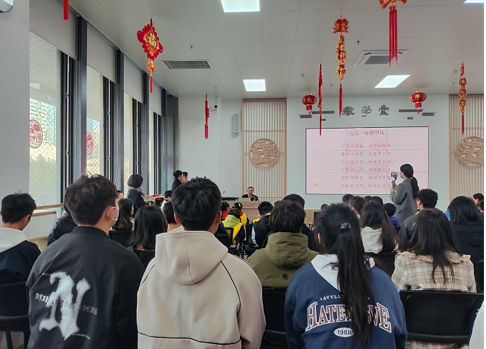 安徽博物院是毛泽东同志唯一公开视察并作出重要指示的省级博物馆,在毛泽东诞辰130周年之际,安徽博物院推出“还看今朝”特别活动。在“吟诵品经典”的环节中,特邀教授张器友为同学们深度解读《七绝·改诗赠父亲》《沁园春·长沙》等毛泽东诗词的诗意、诗情、诗美,同学们感受到诗词的豪迈与大气,不禁感慨诗词历经百年,是传承亦是经典。带着深入的理解,同学们积极参与了“挥毫敬伟人”“走笔展心意”的环节,现场认真书写毛泽东经典诗词,透过一笔一画,一词一句,书写今朝的蓬勃新生力。活动结束后,同学们还参观了安徽文明史馆、安徽建筑馆以及文房四宝馆等。