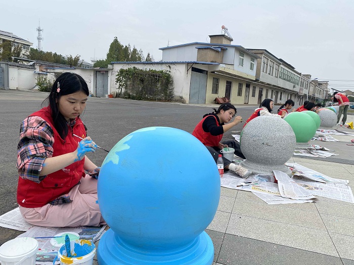 当天,学院“我为乡村绘风景”团队受邀在当地公园开展“萝卜绘”彩绘活动,依据长丰青萝卜IP“左萝”形象,同学们为20多个石墩绘制了特色有趣的卡通形象,拉开了长丰青萝卜系列活动的序幕,为美丽乡村添“油”加“彩”,彩绘活动获得当地村民驻足点赞。