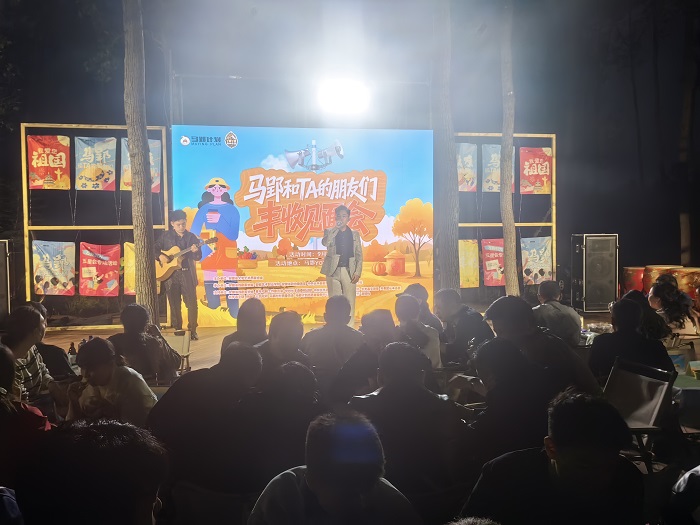 9月20日至21日,团队首先抵达长丰县杨庙镇马郢村,参加丰收节预热活动。同学们带来《蓝莲花》《我们的明天》等歌曲演唱,以歌声传递温情,迅速融入村民之中。由13名不同专业学生组成的志愿服务队也同步开展志愿服务,协助布置场地、维持秩序、引导嘉宾,以热情细致的服务展现学子风采,安财院学子的“志愿红”成为村庄一道亮丽风景。