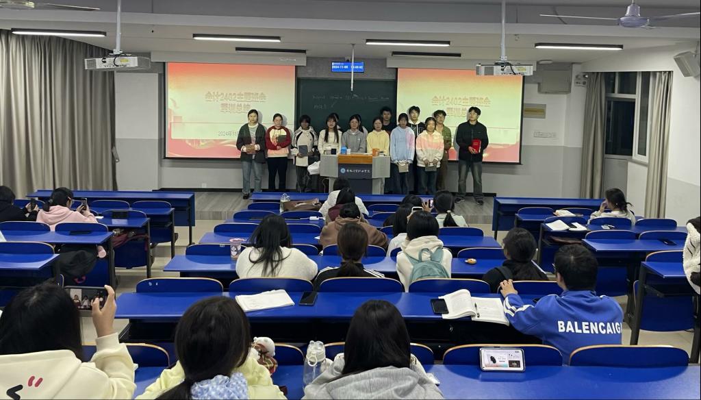 11月5日至6日,财会金融学院教师第一党支部指导会计2402班和会计2403班分别召开了爱国主义教育及军训总结表彰主题班会。班会上,同学们回顾了军训期间的点点滴滴,分享了军训中的感人瞬间和成长故事。通过表彰在军训中表现突出的同学,进一步强化了军训效果,激发了同学们的爱国热情和集体荣誉感。