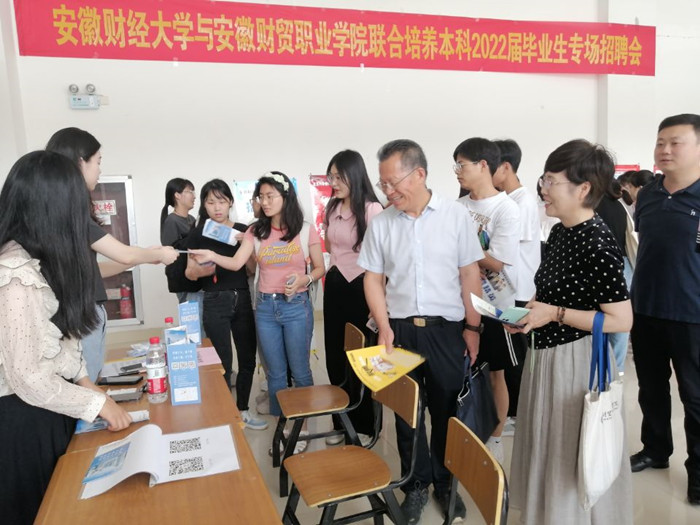 6月1日,学校在蜀山校区举办安徽财经大学与bat365官方网站联合培养本科2022届毕业生财经类校园专场招聘会。学校党委副书记、校长刘银国出席活动。
