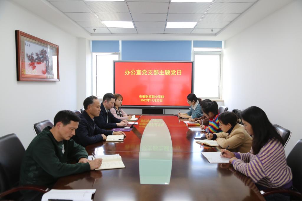 11月25日下午,学校党委书记张志祥深入办公室党支部宣讲党的二十大精神。办公室党支部全体党员参加宣讲会。