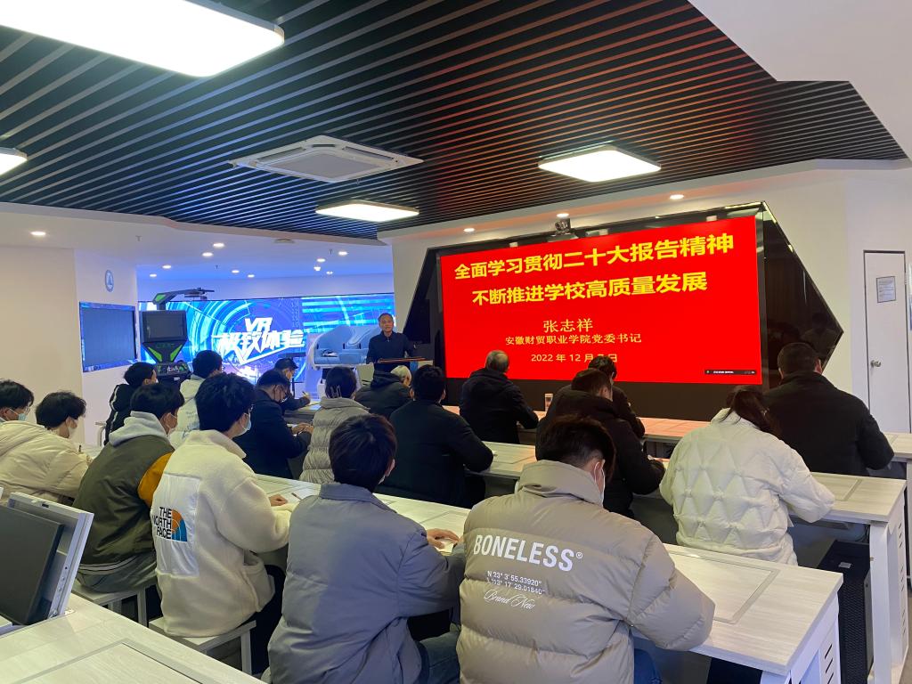 12月7日下午,学校党委书记张志祥深入信息工程学院宣讲党的二十大精神,信息工程学院全体老师和部分学生,线下和线上相结合聆听报告。