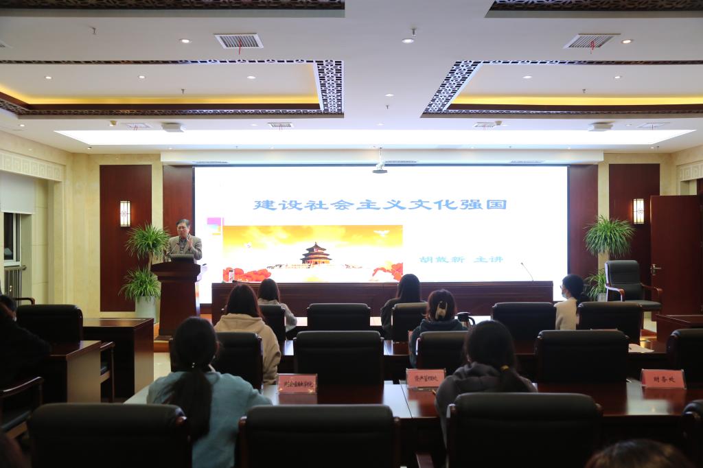 文化兴则国运兴、文化强则民族强。党委委员、副校长胡戴新以“建设社会主义文化强国”为题,从为什么建设中国特色社会主义文化、为什么要坚持马克思主义在意识形态领域指导地位的根本制度、为什么要用社会主义核心价值观凝心聚力、如何提升国家文化软实力和中华文化影响力等四个方面,引导青年学生深刻理解建设文化强国的重要意义,坚定文化自信,激发创新活力,全面增强全体师生干事创业,投身中华民族伟大复兴实践的精神力量。