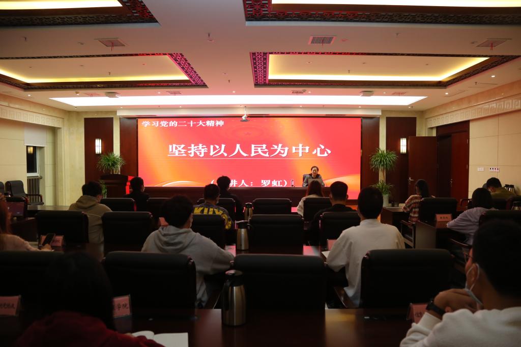 与天下同利者,天下持之;擅天下之利者,天下谋之。党委委员、纪委书记罗虹以“坚持以人民为中心”为题,从为什么必须坚持以人民为中心,如何理解不断实现人民对美好生活的向往,怎样推动人的全面发展、全体人民共同富裕等三个方面,全面阐释了“坚持以人民为中心是我们党的根本执政理念,是新时代坚持和发展中国特色社会主义的一条基本方略”这一重要论述,引导青年学生深入理解中国共产党始终坚持人民至上的价值追求和初心使命。