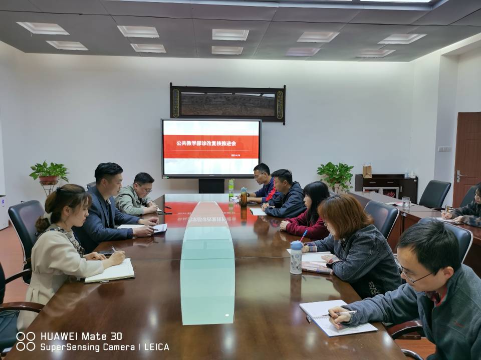 4月19日,公共教学部在行政楼第三会议室召开诊改复核工作推进会,教务处副处长廖步岩,公共教学部各教研室主任、副主任及部分专职教师参加会议,会议由公共教学部主任王学峰主持。