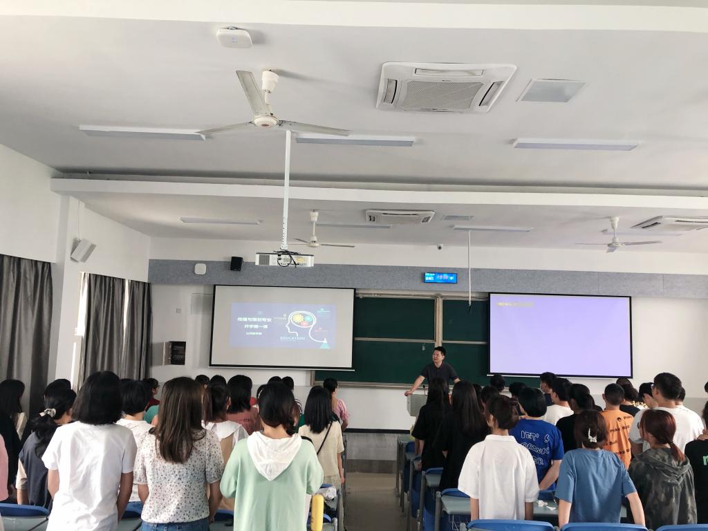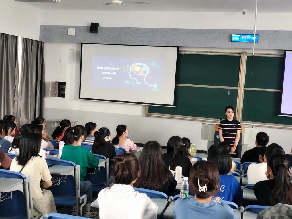 金风送爽,为了帮助传播与策划专业新生展开学习新篇章,开启人生新征途,9月8日上午,公共教学部在5302教室组织开展了新生专业教育活动。公共教学部党总支副书记何步新、副主任陈伟、人文教研室主任赵倩,安徽道听途说文化传播有限公司董事长苏志鸿出席了本次专业教育。陈伟与苏志鸿分别从校内学习和企业实践两个维度开展教育主讲。