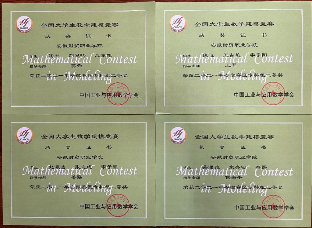 2021年全国大学生数学建模竞赛近日传来捷报,我校选拔7支队伍参赛,共获得安徽赛区专科组二等奖3项、三等奖1项。