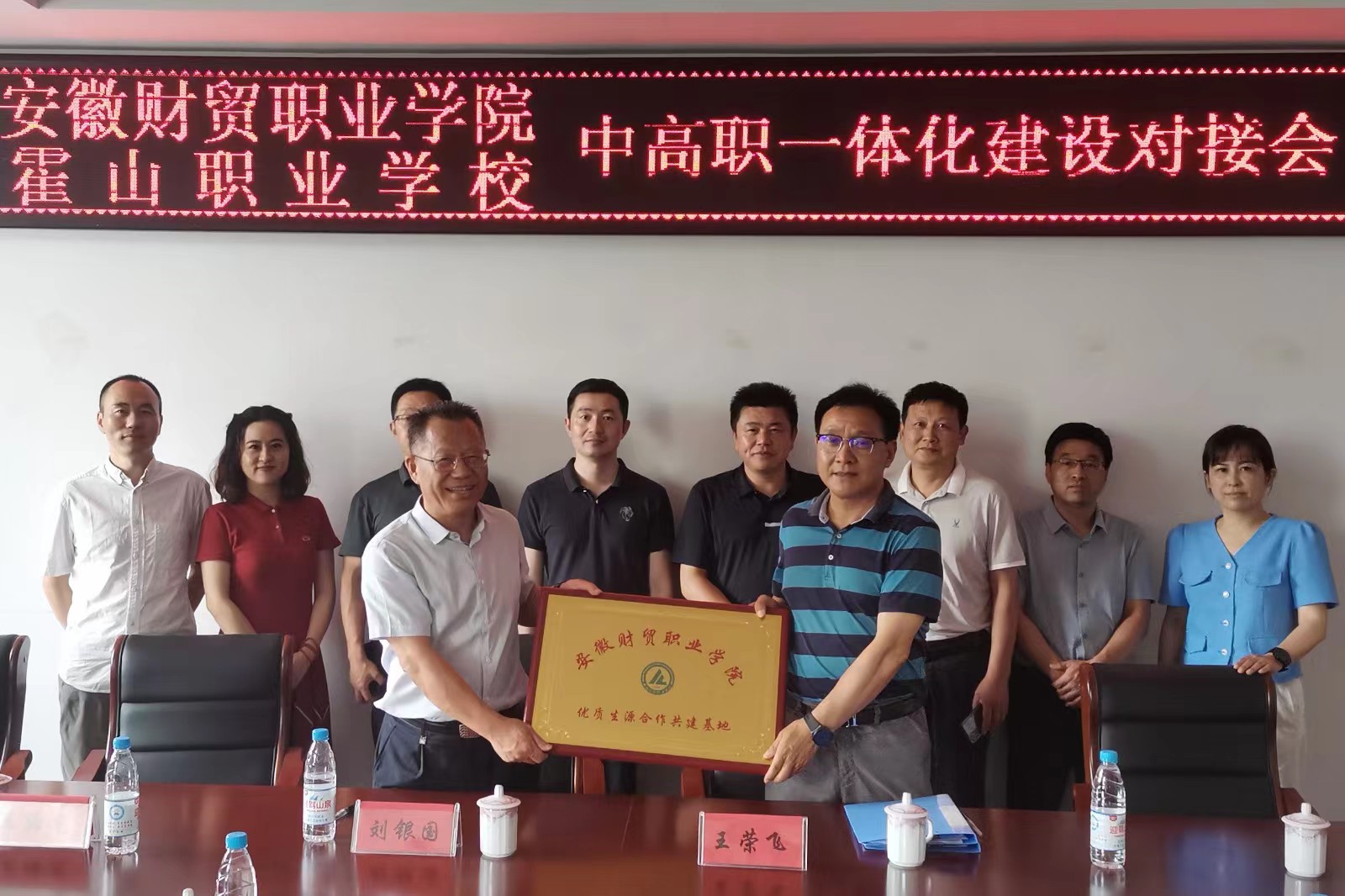 双方共同签订了优质生源基地合作共建意向书。刘银国代表学校向霍山职业学校授予“bat365官方网站优质生源合作共建基地”铜牌,为推进两校中高职一体化建设建立了良好开端。(供稿:陈伟;审稿:王学峰)