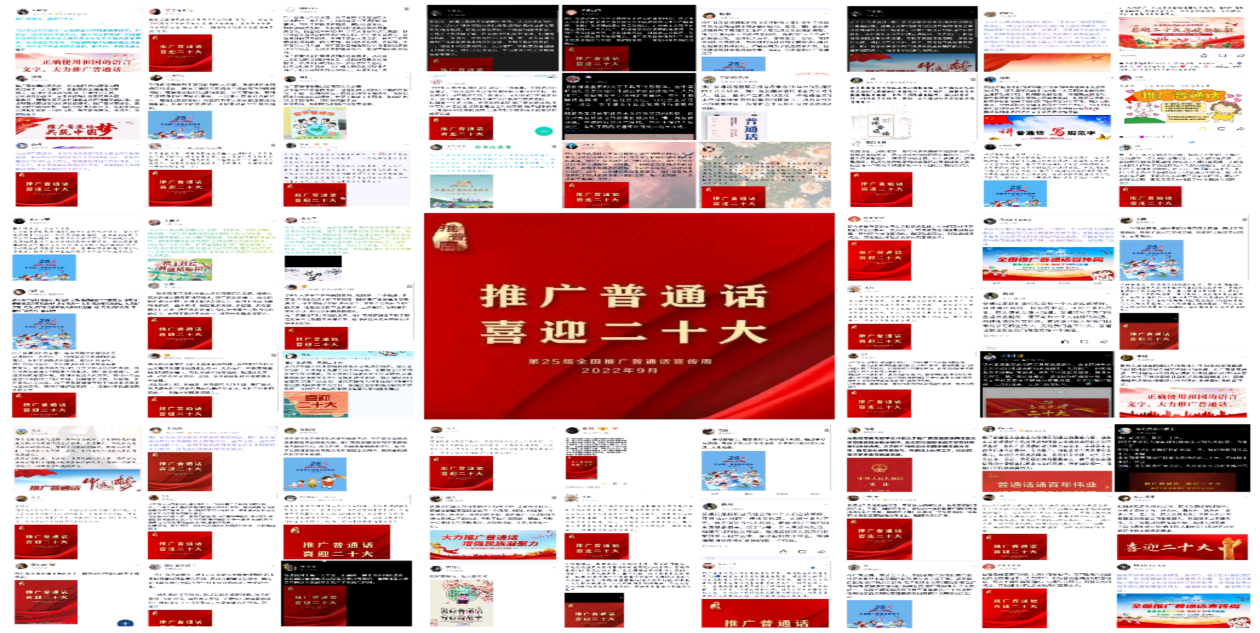 在推普周期间,围绕本次“推普周”活动主题,充分发挥学校的主渠道主阵地的辐射带动作用,通过宣传标语、宣传画、海报、宣传专栏等进行广泛的宣传,并利用校内LED显示屏滚动播放“推广普通话 喜迎二十大”主题标语和宣传图片,营造浓厚的活动氛围。