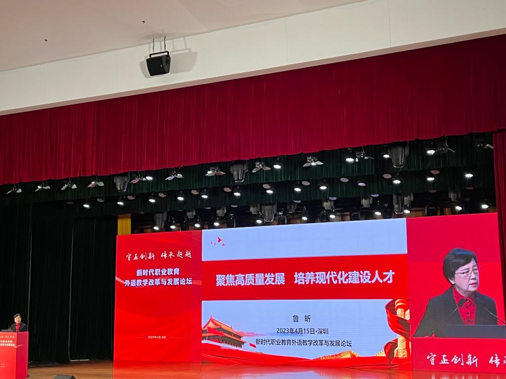 会上,中国职业技术教育学会会长、教育部原副部长鲁昕以“聚焦高质量发展,培养现代化建设人才”为题作论坛主旨报告。报告以党的二十大精神的核心内容为引领,立足现代化产业体系建设的实际要求,凝练五“新”:新思路、新领域、新赛道、新动能、新优势,对职业教育所处的新历史方位,新时期的人才部署做出系统性、前瞻性论述,指明了新时代高质量职业教育的发展方向。报告指出,职业院校外语教育的发展改革要紧跟国家重大战略需求,面向国民经济发展主战场,以创新驱动求发展,以数字技术辟新路。要以“教育强国”助推实现“制造强国”,要统筹职业教育、高等教育、继续教育协同创新,推进职普融通、产教融合和科教融汇,不断优化类型教育定位,发挥区域优势特色,以外语赋能国际化发展。