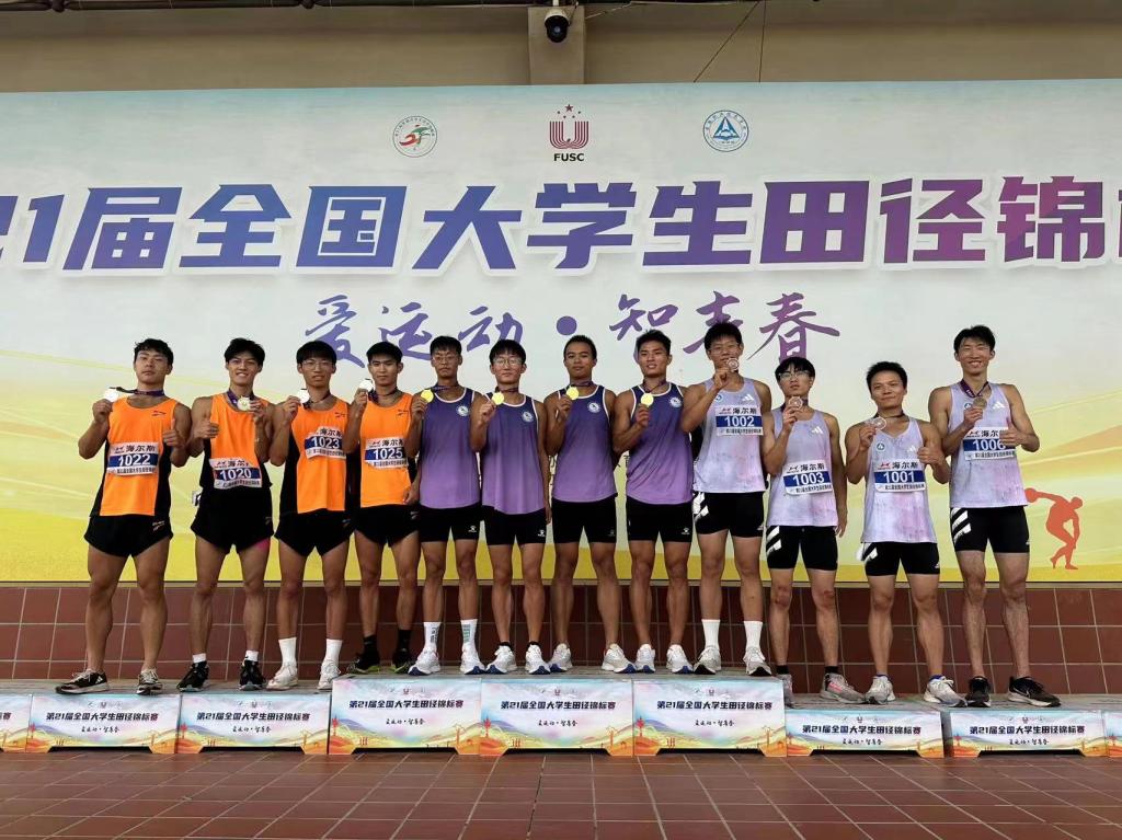 赛前,公共教学部组建了由朱亚伟、刘成、胡靖老师担任主教练,各院部共10名运动员参加的代表队。经过6天的激烈角逐,在男子乙组4x400米接力赛中,来自学校信息工程学院的陈瑞、何志鹏、文化创意学院的张巨辉以及财会金融学院的方涛等4位同学,通过预赛和决赛两轮激烈竞技,最终夺得铜牌;张巨辉同学通过资格赛和决赛获得男子跳远第六名的成绩;经济贸易学院的孙荣蓉同学获得了女子100米栏第八名;我校荣获体育道德风尚奖;共有4位同学获得6项国家二级运动员等级证书,破学校田径纪录5项。