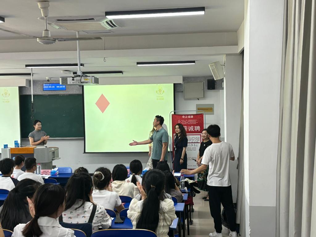 此次招聘会分为三个专场,分别为婴幼儿托育服务与管理专业专场、商务英语专业专场以及运动健康指导专业、食品营养与健康专业专场。活动中,各家企业围绕企业特色、岗位需求、工作环境、薪酬福利、职业发展前景等内容进行宣讲,同时优秀学长学姐也回到母校分享其在企业中的成长故事。同学们热情高涨,认真听讲记录的同时,积极提问互动。宣讲结束后,同学们针对意向企业投递简历并进行面试交流。
