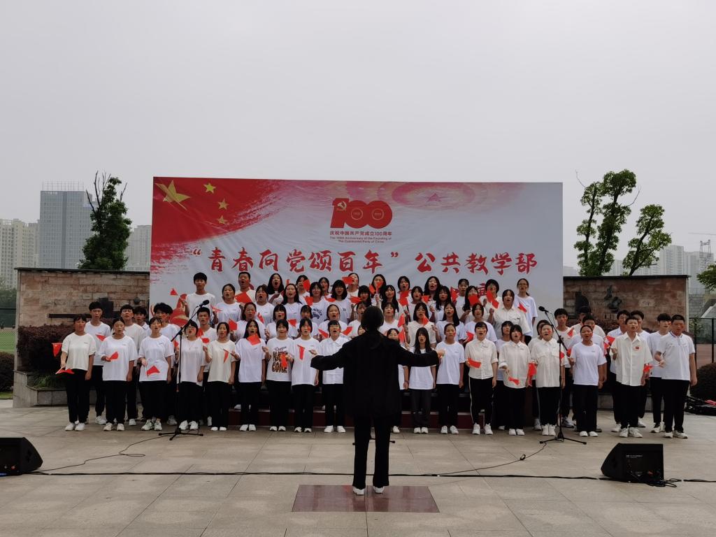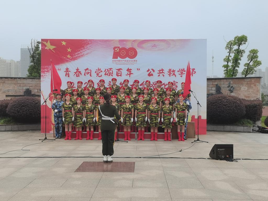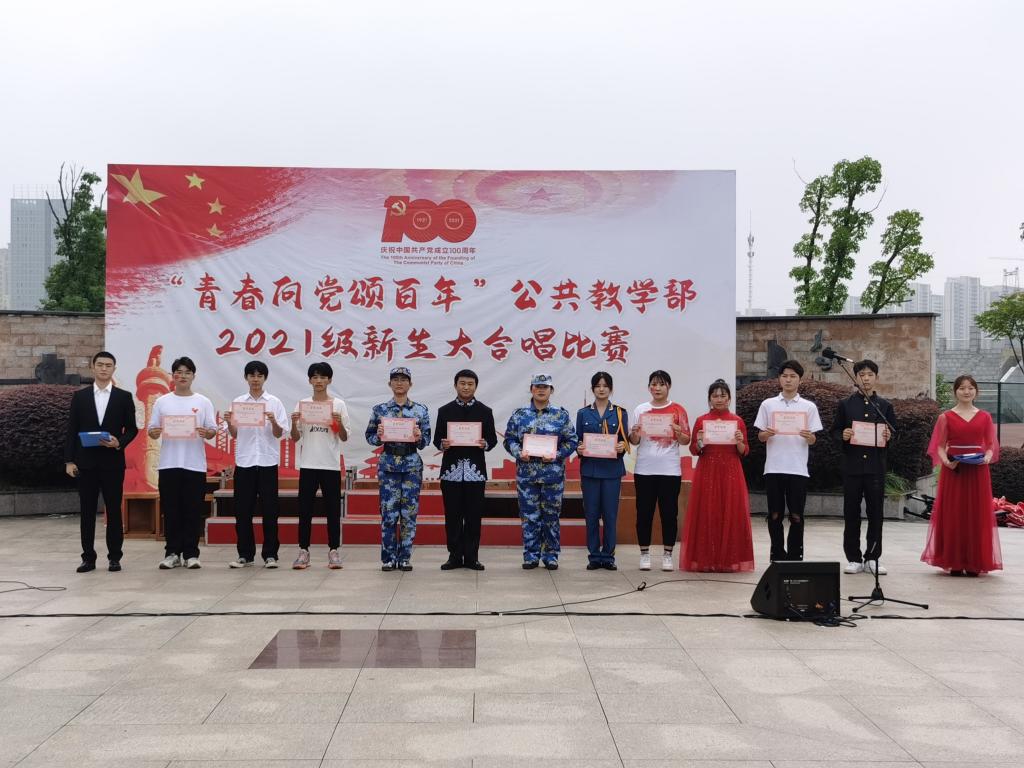 传承红色基因,歌颂伟大时代。为庆祝中国共产党百年华诞和新中国成立72周年,公共教学部于9月29日下午在圆形广场举办以“青春向党颂百年”为主题的2021级新生大合唱比赛,公共教学部2021级全体新生班级参加本次活动,学生处处长刘葆、副处长杨声、公共教学部副主任陈伟、公共教学部教学秘书杨志祥及团委宣传委员蔡依倩担任本次比赛的评委。