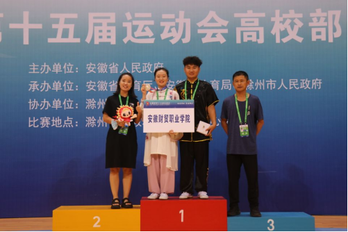 近日,由安徽省人民政府主办、安徽省教育厅和安徽省体育局承办的安徽省第十五届运动会高校部武术比赛在滁州市高教科创城文体中心手球馆举行。我院武术队在郑德玲和朱亚伟老师的带领下,经过4天的激烈比拼,荣获二等奖一项,三等奖两项的优异成绩。
