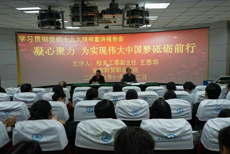 王恩华同志在3D教室给全校青年教师宣讲党的十九大精神,全校200多位青年教师聆听