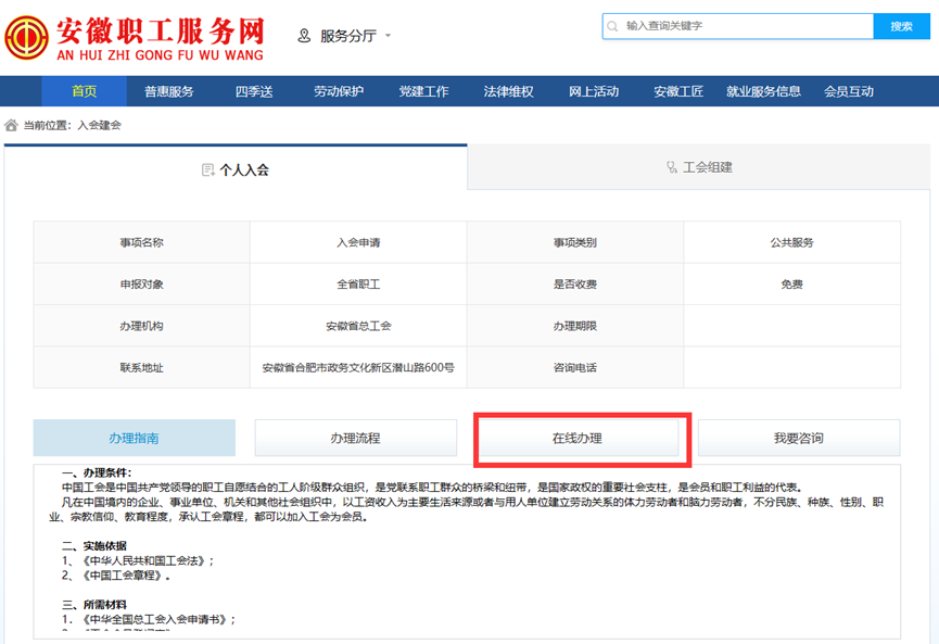1、登录安徽职工服务网 (ahghw.org.cn)