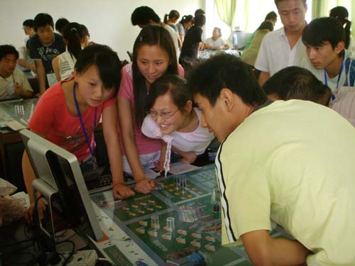 [dvnews_page] 日前,工商管理系顺利完成了06级工商企业管理专业校内综合实训。本次实训在刚刚建成的工商管理系沙盘模拟综合实训室完成的。