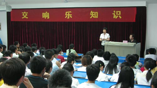 [dvnews_page] 5月19日,安徽艺术职业学院副院长冯新平副教授应邀来到我院,为同学们做了一场交响乐知识讲座。作为第四届校园文化艺术节的系列活动之一,讲座吸引了大批爱好交响乐的同学。深入浅出的讲解让同学们了解了交响乐的基本知识,交响乐著名选段欣赏更是让同学们享受到精美的艺术大餐。