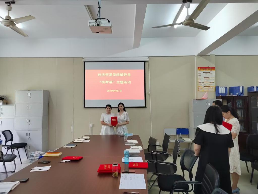 经济贸易学院于9月7日举行辅导员“传帮带”活动,旨在扎实做好学院学生管理服务工作,为新老辅导员提供相互学习,共同进步的平台。经济贸易学院党总支书记陶云龙,副书记丁蓉,学生秘书以及全体专职辅导员参加了此次活动。