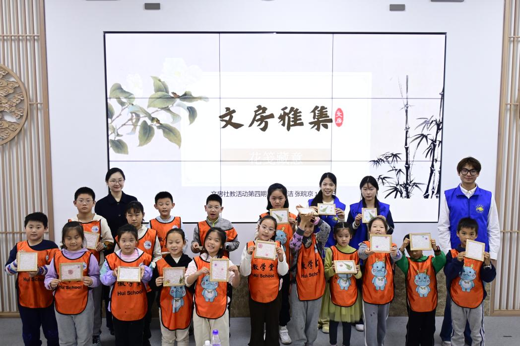 活动中,志愿者们承担组织引导、物资分发、环节协助及现场秩序维护等工作,保障了活动从文化讲解到手作体验各环节的顺畅衔接与高效推进。在花草造纸实践环节,志愿者耐心指导孩子们完成纸艺创作,协助他们制作出各具特色的个人花笺作品,引导大家感受传统花笺艺术的独特韵味与文化内涵。