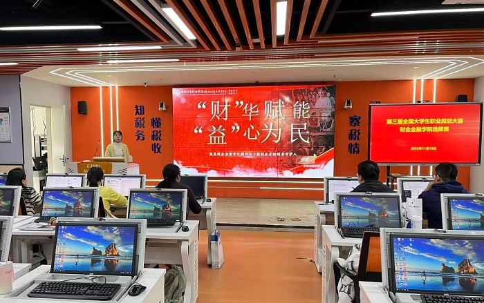 11月19日下午,财会金融学院在新实训楼A501和A503成功举办第三届全国大学生职业规划大赛学院选拔赛。党总支书记胡宏萱、副院长孙敬平、副书记左艳琼、团总支书记沈丽萍以及相关专业老师参加并担任评委。