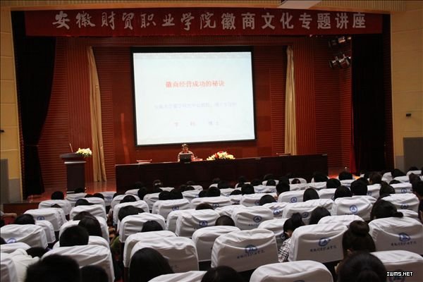 为深化财贸素养教育,传承徽商文化精神,5月16日下午,第九届校园文化艺术节之徽商文化专题讲座在学术报告厅举行,讲座特邀安徽大学徽学研究中心主任卞利教授,讲座题目为《徽商经营成功的秘诀》。学院党委副书记胡善珍,学生处负责人、各院系部书记、学生秘书、专职辅导员,院系学生干部、部分学生代表近400名师生聆听了讲座。