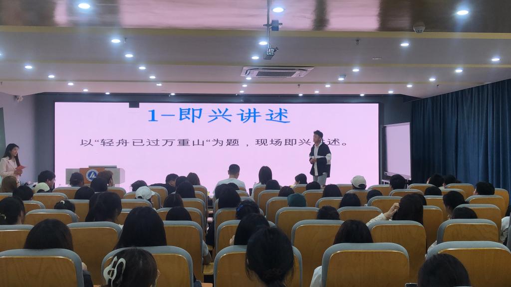 5月16日晚,第十九届校园文化艺术节之“校园星主播”主持人大赛在导游实训室举行,比赛由文化创意学院承办,校团委学生事务发展中心主任孙峻峰、石冰老师、蔡依倩老师、文化创意学院团总支书记刘凯、万幸老师担任比赛评委。来自各学院的100余名学生现场观看。