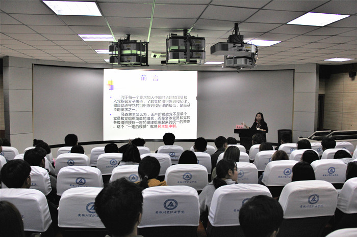宋凌云从服从、选举、党的领导机关、上下级、领导和分工、反对个人崇拜等关键词分析民主集中制的原则作用与特点优势,结合《人民的名义》,《永远在路上》等廉政教育影片生动形象的给同学们讲解了党的“八大纪律”。宋凌云指出, 中国共产主义青年团是党的助手和后备军,积极向团组织和党组织靠拢的优秀青年,应该先了解党的组织原则和纪律,做自觉遵守党的组织原则和纪律的模范。